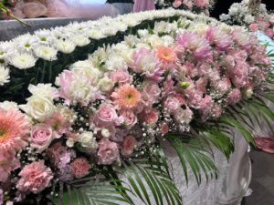 祭壇は、故人様のお好きだった淡いピンクのお花を中心におつくりしました。