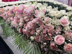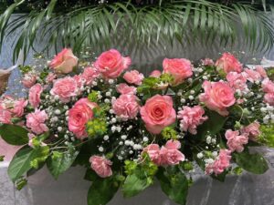 まるで、お庭のバラに囲まれて微笑んでいらっしゃるような、そんな優しい花祭壇となりました。