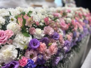 祭壇にも、故人様が特にお好きだったピンクのお花を主役に、淡い紫をそっと添え、全体をパステル調でまとめました。ご家族様が祭壇をご覧になった瞬間、「とても母らしいですね。お願いして良かったです」とおっしゃったその表情には、深い愛情と少しの安堵が浮かんでおり、私たちも胸が熱くなりました。