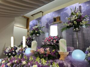 ご家族様が祭壇をご覧になった瞬間、「本当に好きな色で揃えてもらえて、きっと喜んでいると思います」と微笑まれ、そのお言葉が胸に残りました。